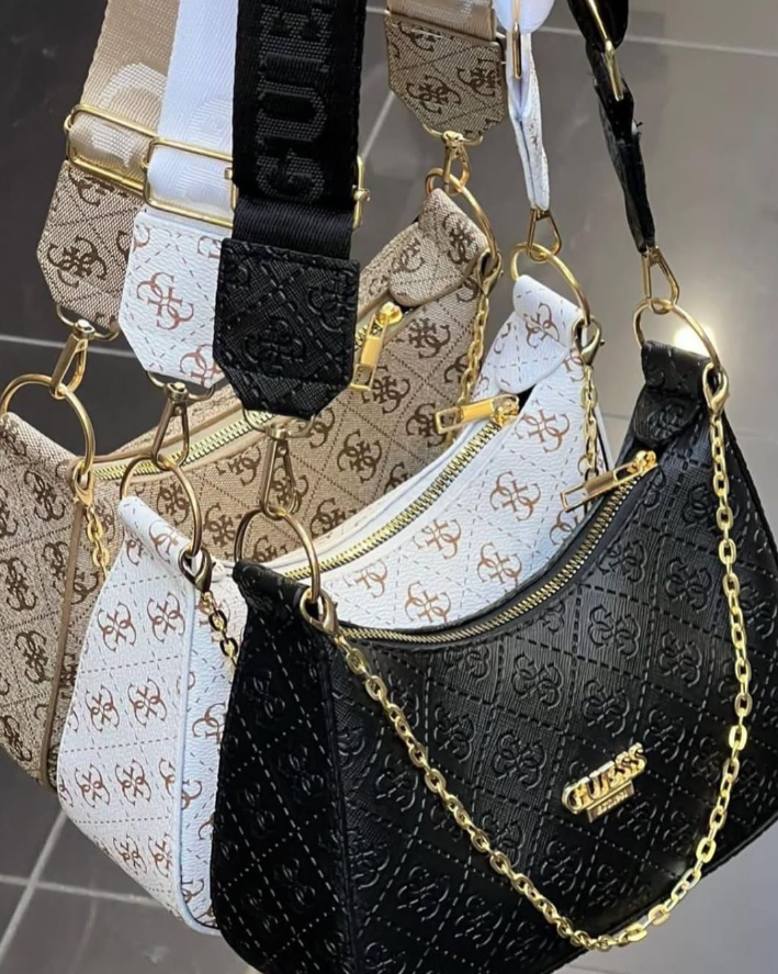 Zincir Süslemeli Desenli Logolu Kadın Çanta